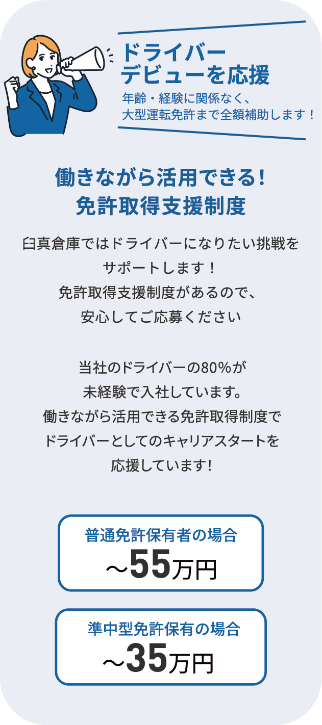 「臼真倉庫」は「ドライバーとして活躍したい!」
