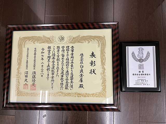 宮城県警察本部 交通部長 自動車安全運転センター 宮城県事務所長 連盟により 優秀安全運転事業所 銀…